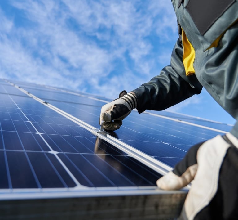 Nuestros paneles solares absorben la luz solar y la convierten en electricidad. Luego, nuestros sistemas de almacenamiento de baterías de última generación almacenan el exceso de energía solar para usarla cuando el sol no brilla, como por la noche o en días nublados. Esto garantiza un suministro de energía continuo a su hogar, reduce sus facturas de electricidad y disminuye su huella de carbono.